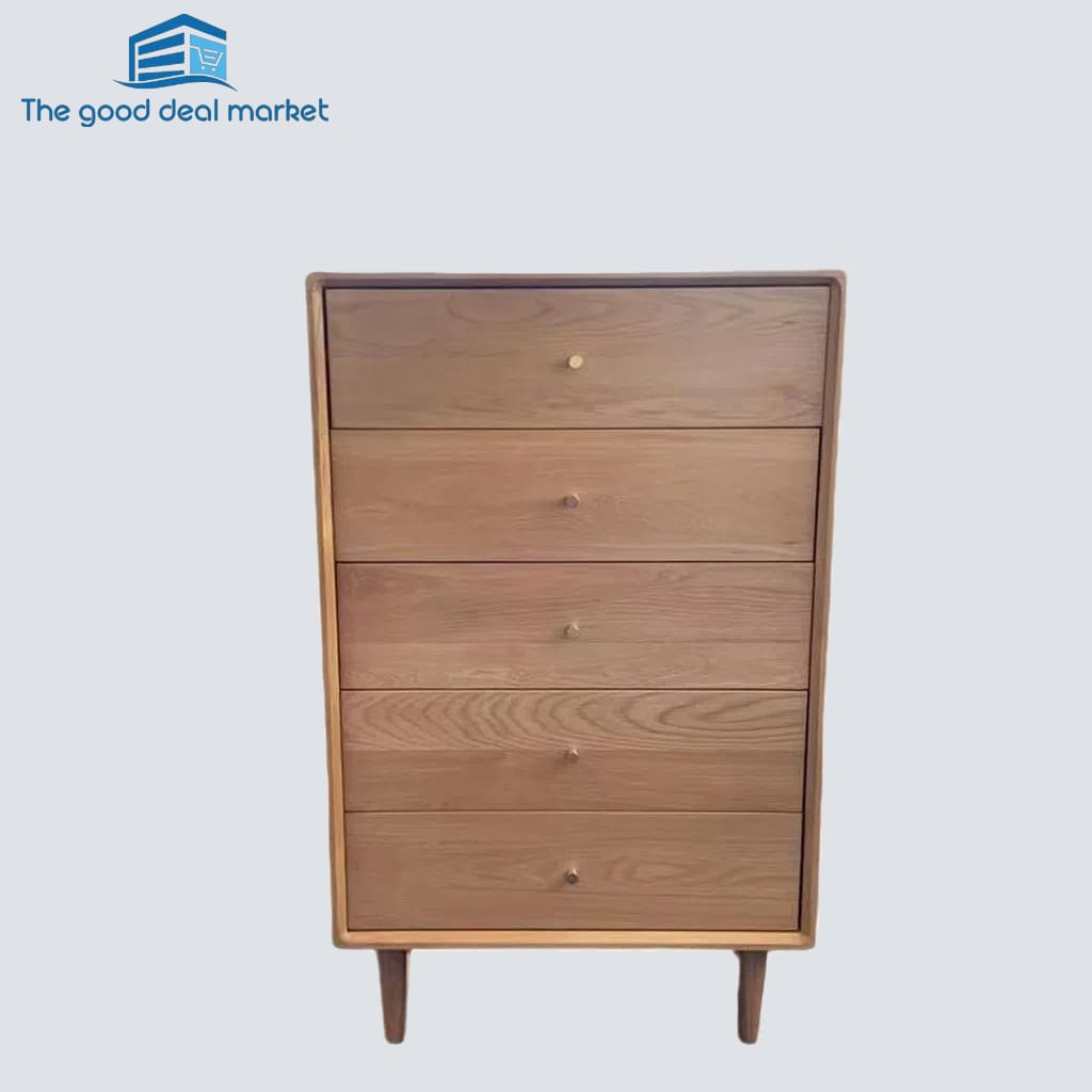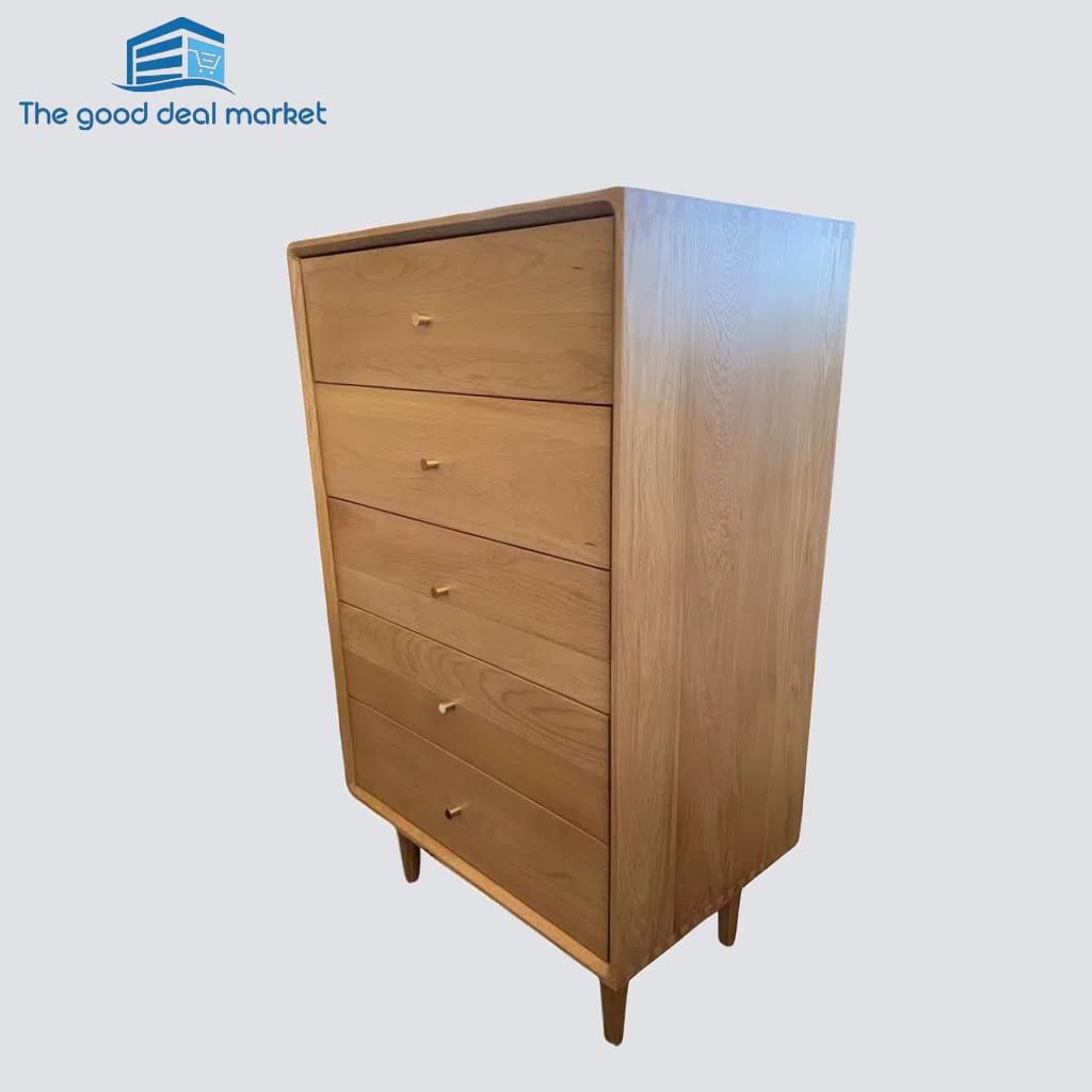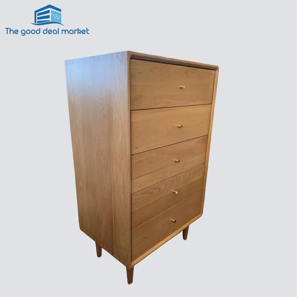 Amazingly simple and abundantly spacious with just the right height, the YD dresser is the perfect storage solution for the bedroom. With six drawers, it offers enough space for impeccable organization and you can say goodbye to clutter! The American Oak construction with stunning natural variations makes every YD dresser a unique piece to be adored and admired. The natural finish makes it an effortless blend in most room décors. The smooth top gives you a place for photo frames with cherished photos, a statement vase or any other keepsakes.